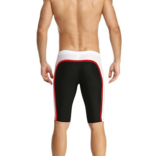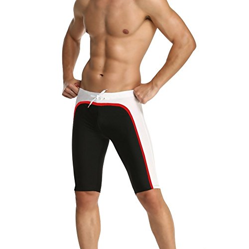 Title : Baleaf Men's Splice Jammer Fashion Swimsuit Color Black White Size L