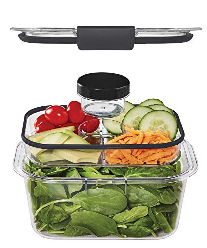 Rubbermaid Brilliance Salad/Snack Lunch Storage Container Combo Kit, 100% Leak-Proof, Plastic, Clear