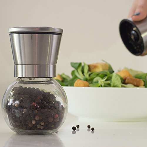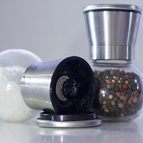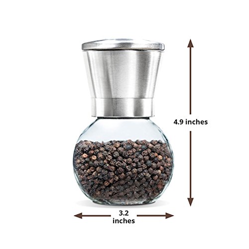 Deluxe Stainless Salt and Pepper Grinder Set – Easy to Clean Salt Mill and Pepper Mill, Non Corrosive Glass Round Body