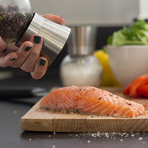 PREMIUM QUALITY GLASS AND STAINLESS STEEL SALT AND PEPPER GRINDER SET: Refined and attractive, with timeless design, sturdy build, and quality finish – our easy-to-use grinder sets are sure to be a valuable addition to your kitchen for years.