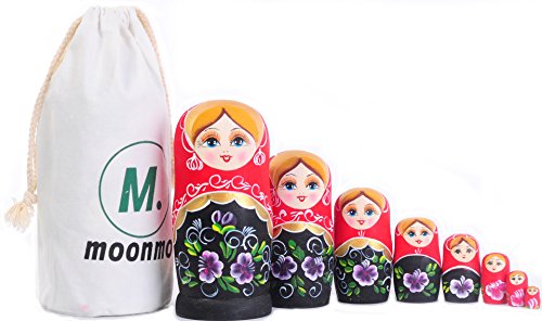 -. Title : Moonmo 8pcs Lovely Girl Handmade Wooden Russia Nesting Dolls Gift Russian Nesting Wishing Dolls Matryoshka Traditional