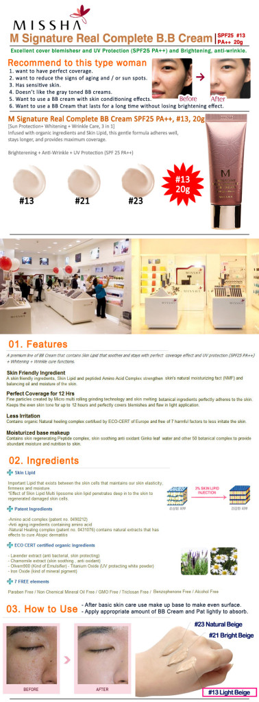 MISSHA M SIGNATURE REAL COMPLETE B.B CREAM No.13 Light Beige 20g
