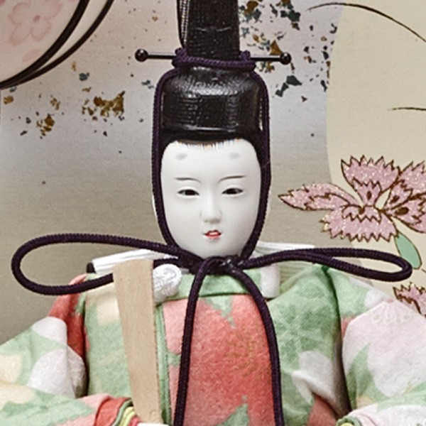 ・台座・屏風等には落ち着いた色目の雛人形セット。
