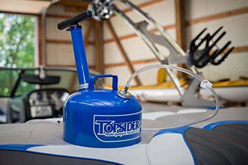 ReleaseDate : 2013-07-26 Studio : Air Power America Publisher : Air Power America Binding : Automotive Product Description The Topsider's reliability and convenience has long been trusted by boaters for easy, no mess oil changes, and other marine and automotive maintenance applications. No electricity required, the Topsider multi-purpose vacuum pump-out system uses a vacuum to pull oil out of your crankcase. A 12 inches diameter stance provides a stable base, eliminating potential tip-overs and spills, simply slide the withdrawal hose down your dipstick hole, open the valve and wait for 8 to 10 minutes. All of your old oil will be drawn into the Topsider's 8 Quart container. Very easy to use, suction probe and instructions included. 0
