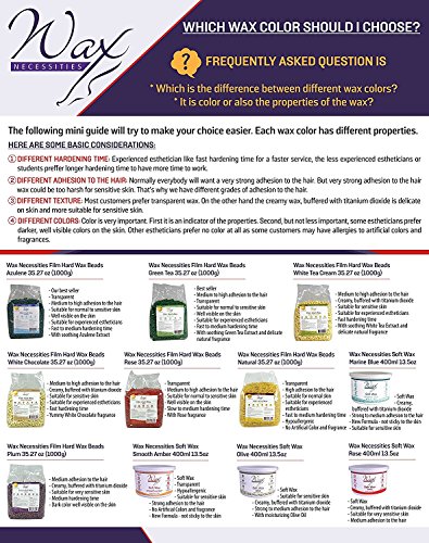 Professional use ONLY. Please read instructions before. Transparent film wax. Applied in thin layer, removed as a film. Characterized by short period of hardening which allows experienced cosmetologist to perform depilation procedure in conditions of tight work schedule. Effective for removal of coarse and short hairs. Ideal for armpits and deep bikini areas. Max Temperature: max 42 degrees C (107.6 degrees F). Use applicator. No stripes removal. WARNING: Professional Use Only! Test on a small area before use. If rush develops discontinue use. Do not apply on mucus tissues, blemishes, moles, warts, sunburns or inflamed area, post surgeries areas on Renova or RetinA users. Do not heat above max temperature.Feature
