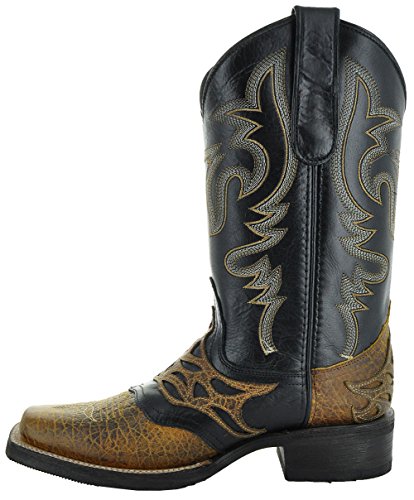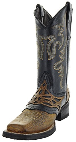 Binding : Apparel Product Description These hardworking boots deliver the comfort and good looks you've been searching for. They're crafted of premium, genuine leather, available in your choice or Brown or Tan-both of which are versatile and easy to pair with jeans and other apparel. These boots are designed with eye-catching style and dependable durability, for guys who understand the value of quality-made footwear. They're built tough for a long work day, but also stylish for going out. You can depend on them to keep your feet comfortable, and get compliments, wherever you wear them. Several intricate details give these boots their distinctive appeal. Faux crocodile skin texture on the foot, and a contrast saddle vamp with inlay cutouts adds dimension and texture that you won't find in ordinary store-bought boots. The 12-inch shafts feature a Western pattern in contrast stitching for a look that's both authentic and edgy. Cushioned insoles and shock-absorbing leather soles provide all-day comfort. 0