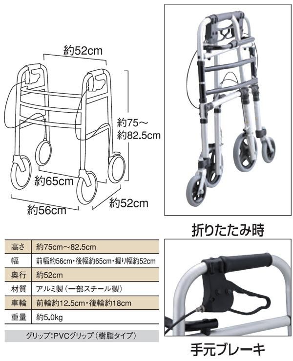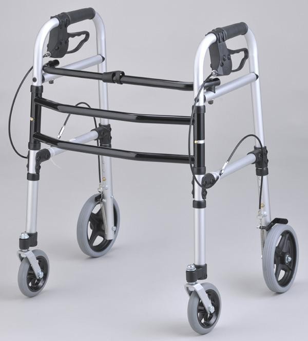 小回りがきき、在宅向けの歩行器です。指はさみが心配不要のグリップです。折りたたみ式でコンパクトに収納できます。