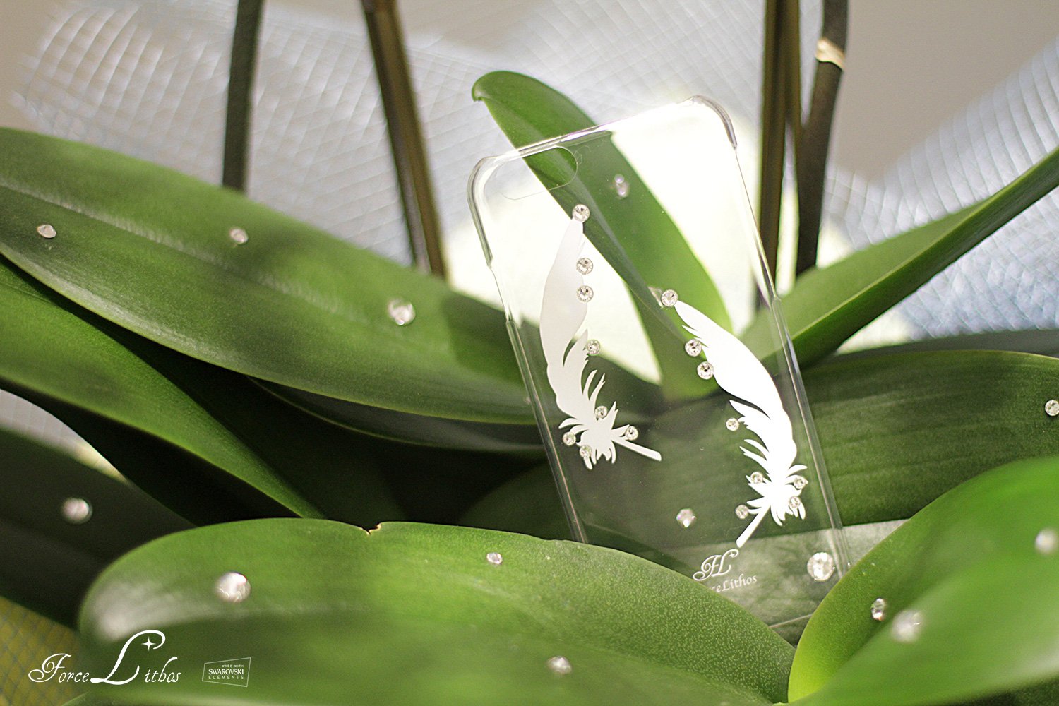 Sophisticated simple elegant, clear case treated with fine Swarovski elements one by one carefully