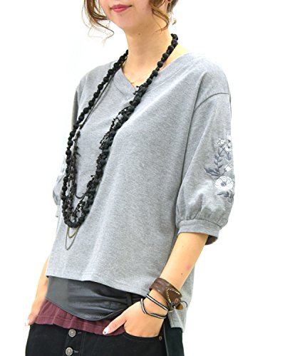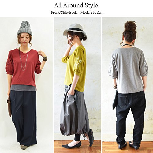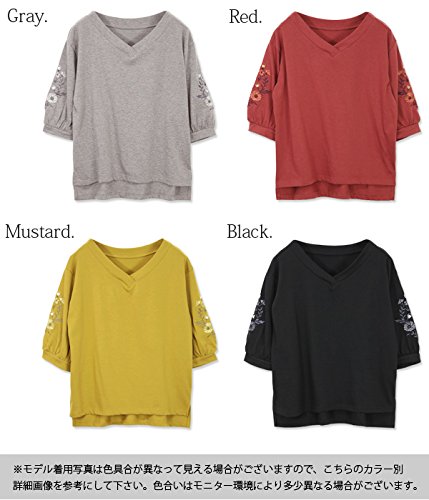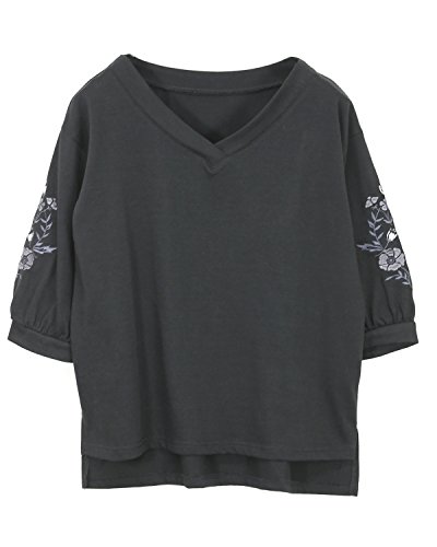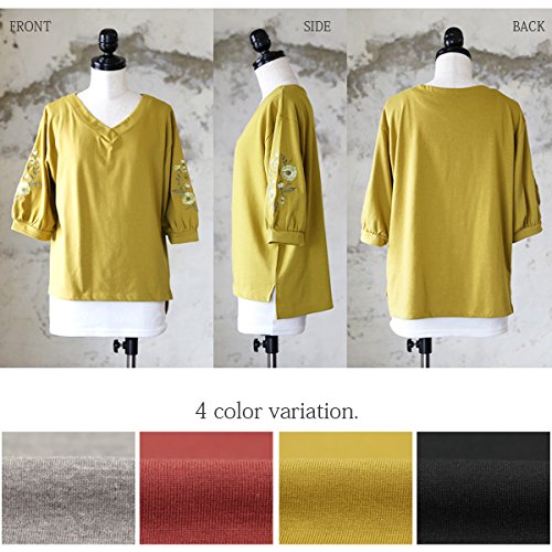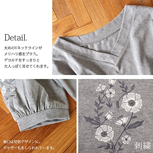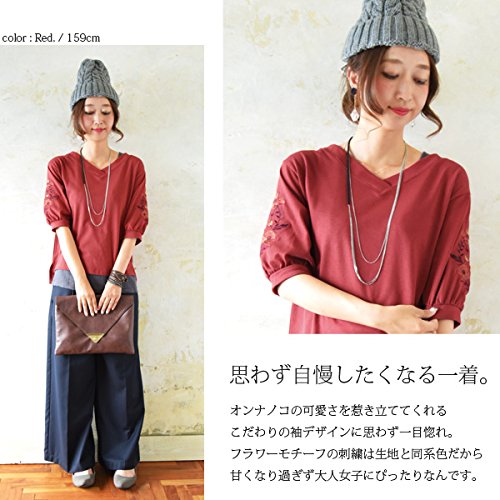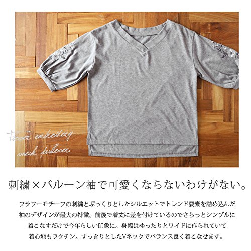 -. Title : [アンドイット] and it_ フラワー刺繍 7分袖 Vネック プルオーバー レディース トップス
