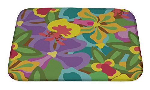 Gear New No Slip Microfiber Memory Foam Summer Orchid Pattern Bath Rug Mat, 24" X 17"