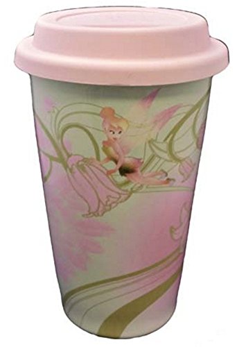 -. Brand : Disney -. Color : Pink Green -. Feature : Rubber sipper lid / about 6" tall x 3 3/4" wide across the top / About 12 oz / Microwave & dishwasher safe / Disney Theme Parks -. ProductGroup : Kitchen -. ProductTypeName : KITCHEN -. Title : Disney Parks Tinker Bell Elegant Wild Roses Travel Mug w/ Rubber Grip - Disney Parks Exclusive & Limited Availability