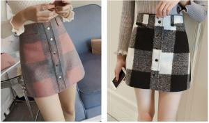 大きめのタイルチェック柄が可愛いウールのミニ丈スカート♪