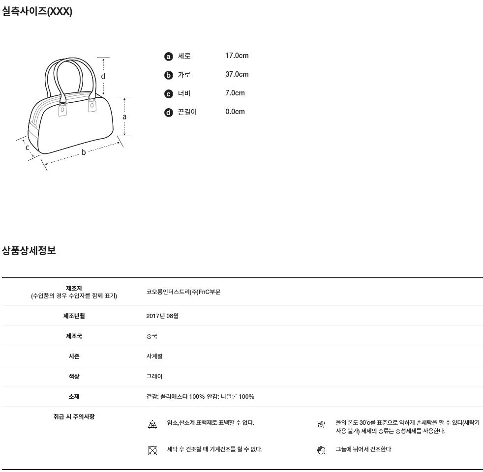 제품에 표시되어 있는 섬유 혼용률, 치수, 세탁방법을 착용 전 반드시 확인하십시오.