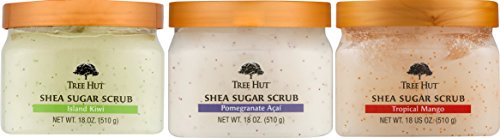 Tree Hut: Tropical Mango, Pomegranate Acai, and Kiwi Island 18OZ Shea Sugar Scrub Bundle (3 Count)