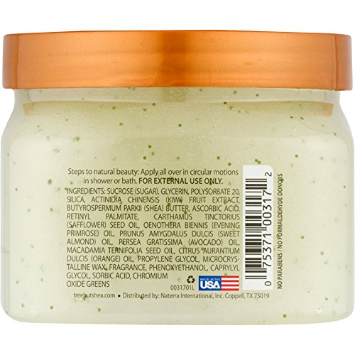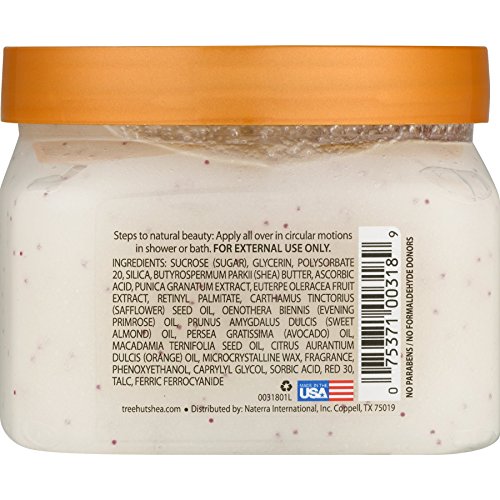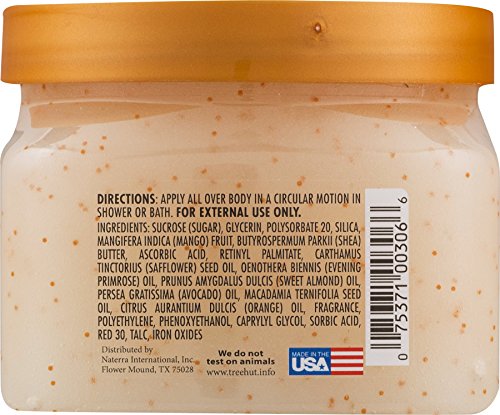 Made with certified Organic Shea Butter for skin repairing and moisturizing, anti-aging and promoting elasticity Infused with Fruit Extract containing omega-3 and alpha-linoleic acid to soften and nourish dry skin Formulated with Safflower Seed Oil, Evening Primrose Oil, Orange Oil, Avocado Oil, and Macadamia oil to rejuvenate, support collagen formation, and moisturize skin The sugar grains will softly polish away dead and damaged skin, leaving your skin soft and smooth Enjoy the delectable scentFeature