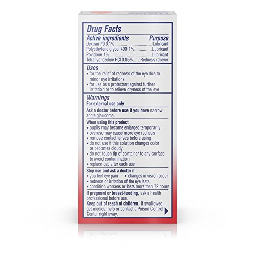 -. Feature : Relieves dry, red eyes due to minor eye irritation / Tetrahydrozoline hydrochloride redness reliever / Hydrating moisturizers soothe, refresh, and cool / Protects against further irritation / .5 fl. oz bottle