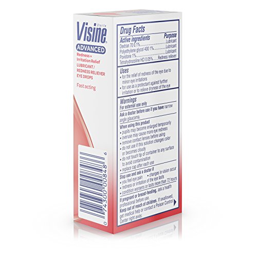 -. Title : Visine Advanced Redness + Irritation Relief Lubricant/Redness Reliever Eye Drops, .5 fl. oz