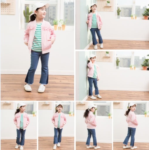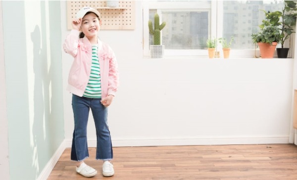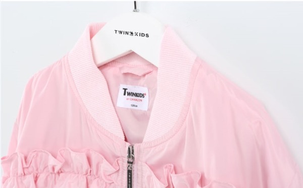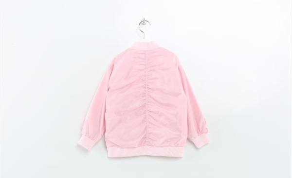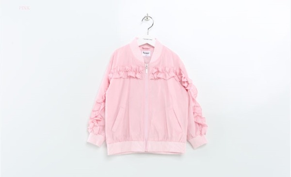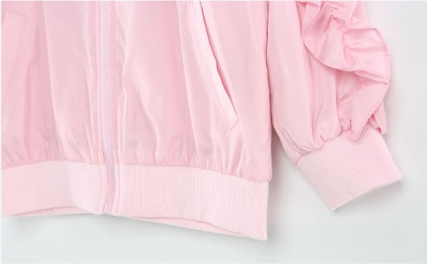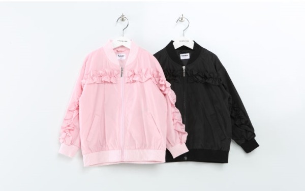 드롭셜더의 루주한 핏의 항공점퍼.앞가슴에서 소매로 이어지는 프릴단과 뒷중심 파카링으로 로맨틱한 스타일.