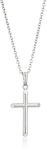 -. Title : Girls' Sterling Silver Children's Polished Tubular Cross Pendant Necklace, 15"