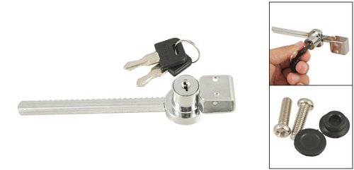 - Feature : Product Name : Sliding Lock;Color : Silver Tone & Black / Material : Chrome Plated Metal, Plastic;Blade Length : 10cm/ 4" / Total Size : 14 x 2.8 x 2.4cm/ 5.5" x 1.1" x 0.9" (L*W*T);Weight : 67.5g / Package : 1 x Sliding Lock;2 x Keys : 2 x Keys / 2 x Screws : 2 x Screws