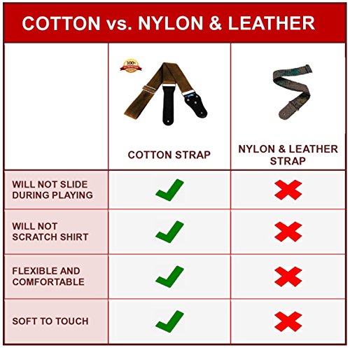 -. Brand : MoozikPro -. Feature : SOFT COTTON- Will not slide or cut into your body like nylon or leather electric guitar strap / FOR ALL AGES AND SIZES- Adjustable from 29" (73 cm) to 57" (145 cm) acoustic guitar strap. / NEW DESIGN- Secure leather holes and bonus pick pocket makes it great adults or kids guitar strap. / CLASSICAL GUITAR STRAP- No logos, gimmicks, pure classical design to suit everyone's tastes. / 100% SATISFACTION GUARANTEED- best quality of all acoustic guitars straps. -. Label : Moozikpro -. Manufacturer : Moozikpro -. PackageQuantity : 1 -. ProductGroup : Musical Instruments -. ProductTypeName : INSTRUMENT_PARTS_AND_ACCESSORIES -. Publisher : Moozikpro -. Studio : Moozikpro -. Title : Acoustic Guitar Strap - Soft Cotton no Slide During Playing and Cut Into Your Body Like Nylon - Wide Adjustment Range and Secure Leather Holes-Suitable for All Ages - Classical Design