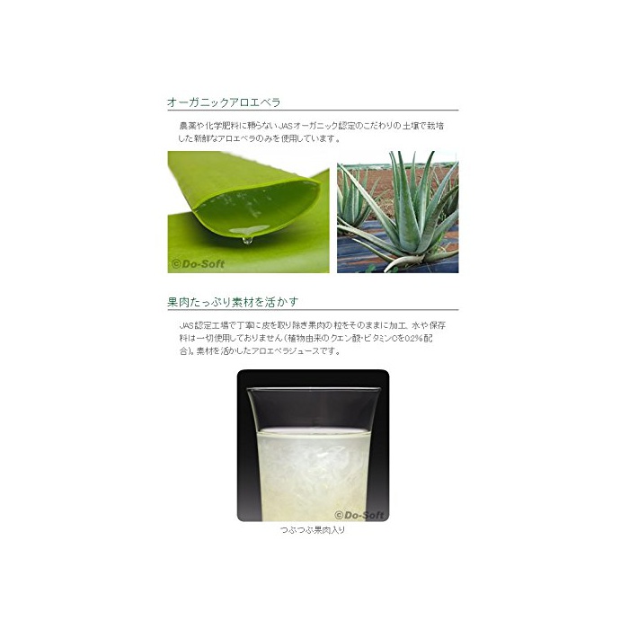 오키나와현산의 JAS인정 오거닉 알로에《베라》를 사용.알로에《베라》독특한 버릇이 적게 마시기 쉬운 알로에《베라》음료입니다.【농약 불사용,화학비료 불사용,제초제 불사용,방부제무 첨가】