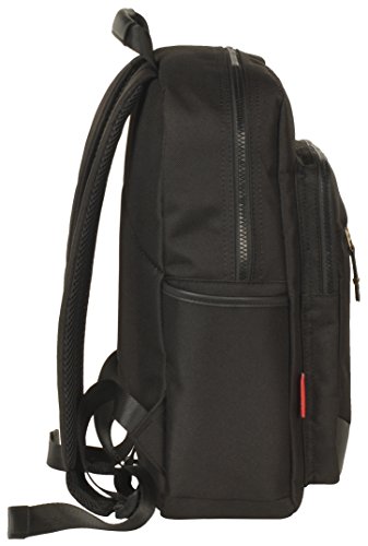The PVC back coating on the polyester allows for water resistance. Top load opening. Zipper closure on main compartment and secondary compartment. Laptop pocket in main pocket. Fits up to most 11" laptops. Two external front pocket with zipper closure. Two external water bottle pockets. Padded back for comfort. Padded adjustable shoulder straps. Top handle with leather detail.Feature