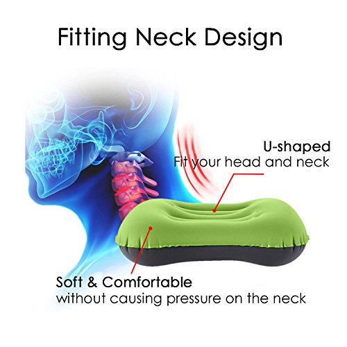 Ergonomic Shape Design. Two wide grooves in the inflatable pillow center cradle your head in supportive position and prevent head sliding.