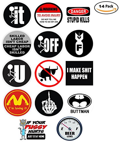 Funny Hard Hat Stickers - BEST SELLER - 14 Decal Value Pack. Great for a Construction Toolbox, Hardhat, Lunchbox, Helmet, Mechanic & More. Fun Gift for Union Working Men & Women. USA Made.