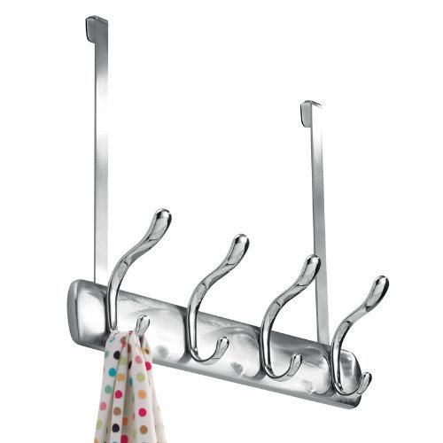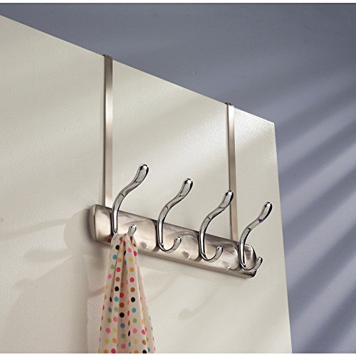 InterDesign Bruschia Over Door Storage Rack – Organizer Hooks for Coats, Hats, Robes, Clothes or Towels – 4 Dual Hooks, Brushed Nickel/Chrome