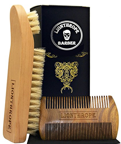 Why Lionthrope Beard Brush and Comb? - BEARDS, MUSTASHES & SIDEBURNS Lionthrope Beard brush & Comb kit are made with tough bristles to untangle, style and simply groom your facial hair. The comb is crafted from sandalwood and it has a great natural color and luxurious pattern of wood