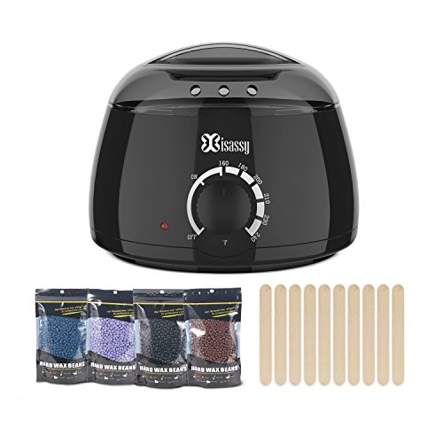 ISASSY Hair Removal Hot Wax Warmer Waxing Kit with 4 Different Flavors Hard Wax Beans and 10 Wax Applicator Sticks