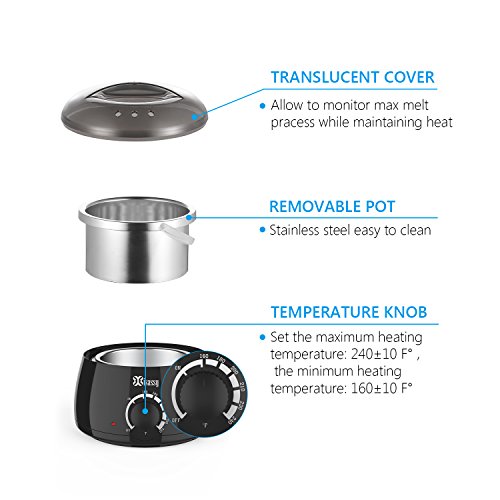 - Rapid Melting: Adjustable heat options from medium to high(160℉ to 240℉). If want faster melting, turn the wax warmer on and adjust the dial to 240℉ the highest temperature for time-saving and fast melting