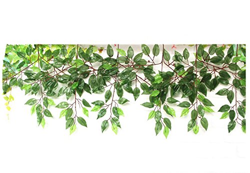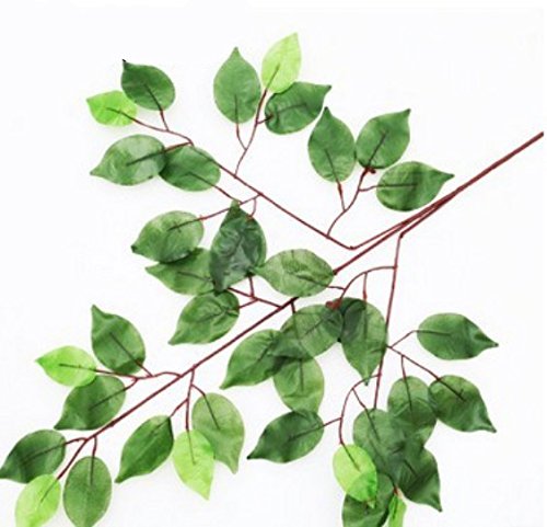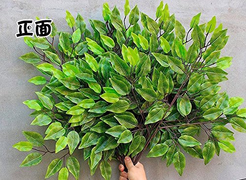 Shihualine Plastic Plant Green Artificial Banyan Leaves Ficus Branches Grass Home Decoration Purple branch (12pcs)