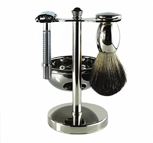 Edward London & Co. Premium Shaving Gift Set- 100% Super Fine Badger Brush,Classic Chrome Safety Razor, Shaving Bowl & Stand