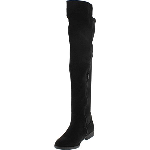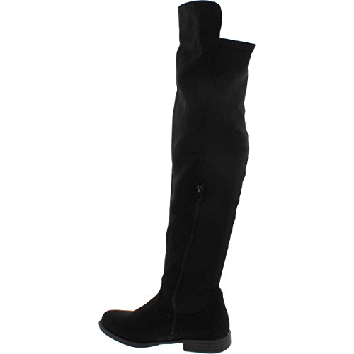 Bamboo Monterey-05 Women's Stretch Back Side Zipper Low Heel Over The Knee Boots,Black Suede,8.5