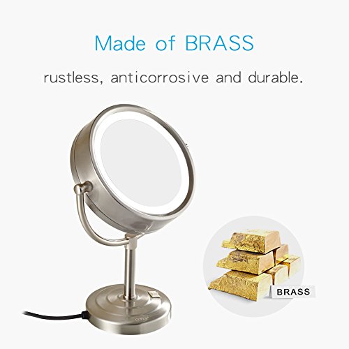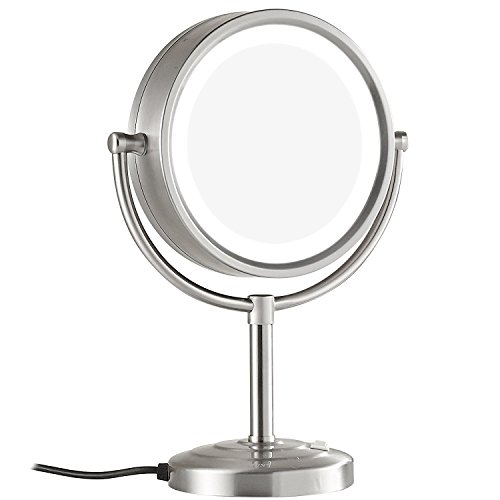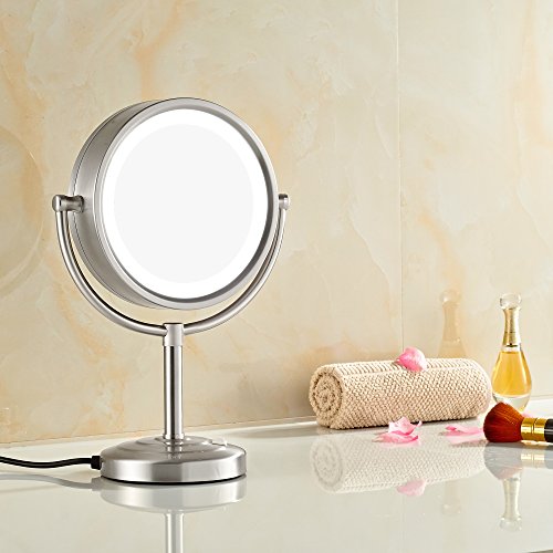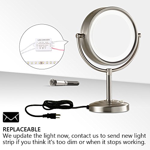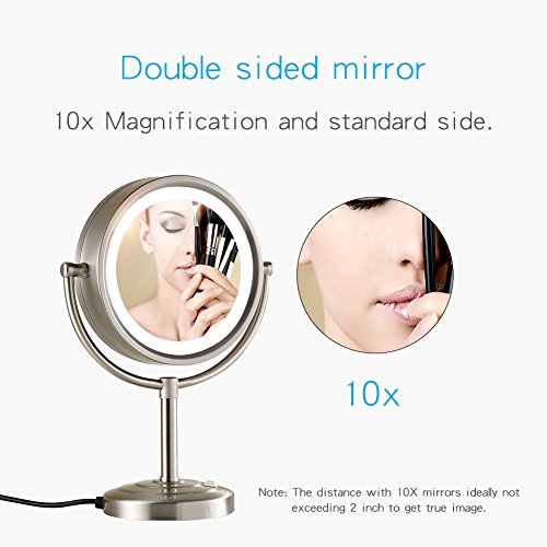 GURUN8.5-Inch Tabletop Double-Sided LED Lighted Makeup Mirror with 10x Magnification, Nickel Brushed Finish M2208DN(8.5in,10x)
