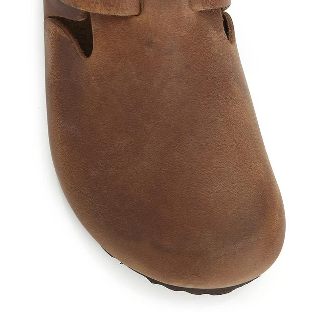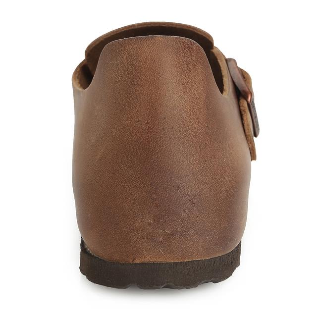 다크브라운 컬러에 둥근 앞코 라인과 스트랩 장식으로 포인트를 준 샌들 입니다. 편안하게 착용할수 있는 실용적인 아이템 입니다.