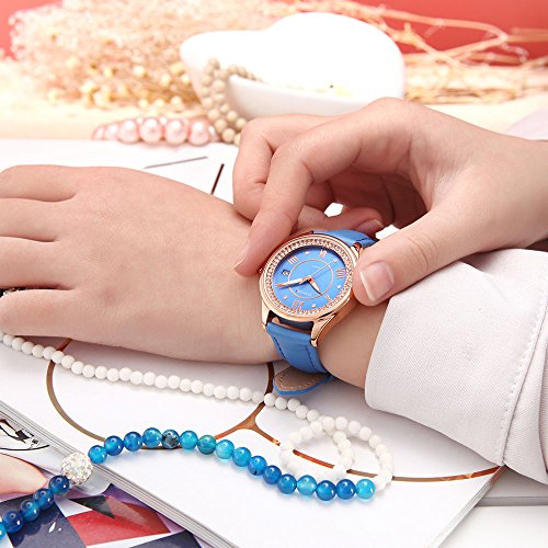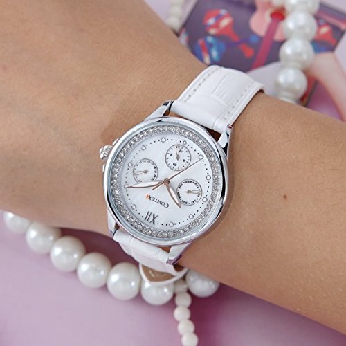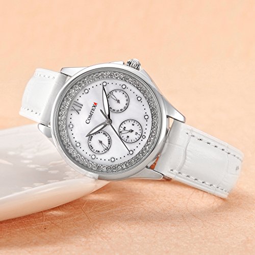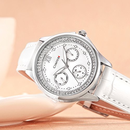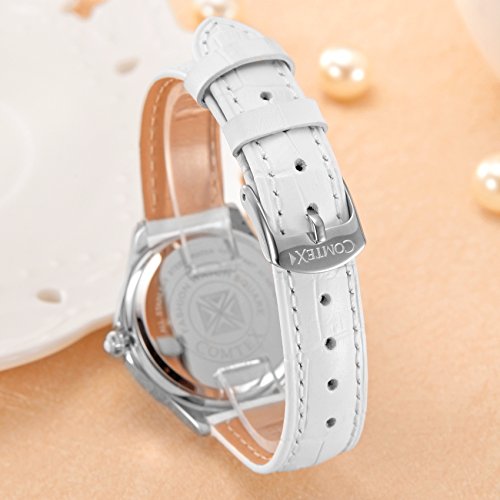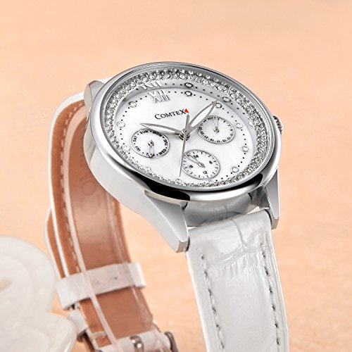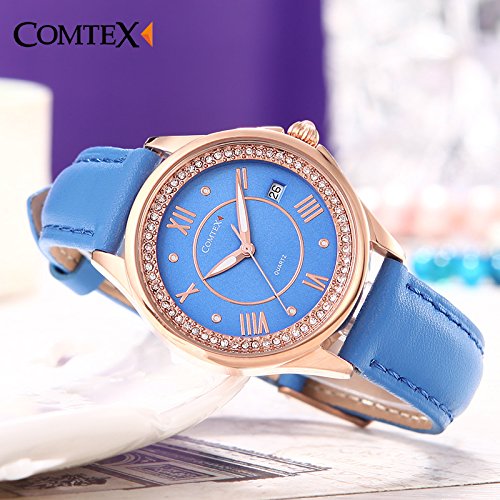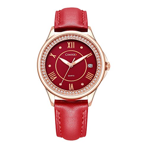 -. Title : Comtex 腕時計 レディース ワインレッド 皮革 日付 アナログ ウオッチ クオーツ 時計 ピンクゴールド