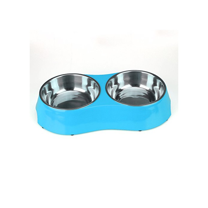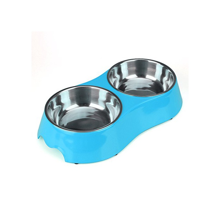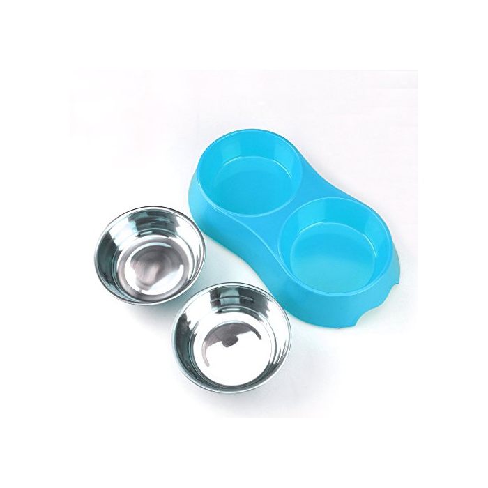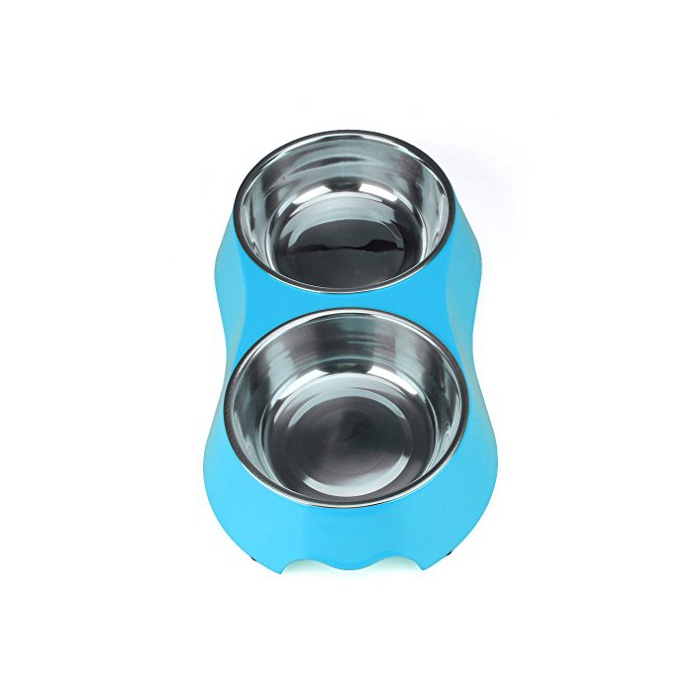 원본상품명:ペットボウル お皿 犬 猫 ペット用 食器 ステンレス製ペット皿 給餌容器 給水容器 滑り止め付き 二つボウルのデザイン 食事 ボウル 皿 食器 グルメ ドッグ キャット 動物 給餌 カラフル (ブル