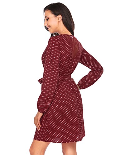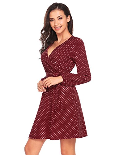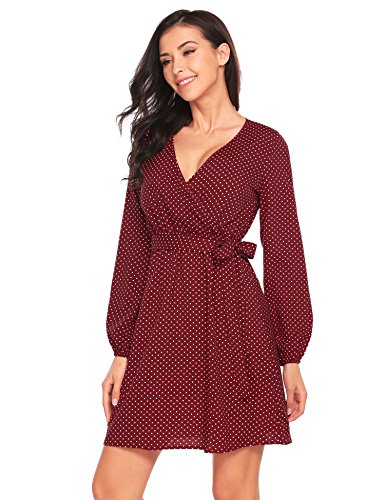 Beyove Women's Rayon Polka Dot Casual V-Neck Long Sleeve A-line Wrap Dress With Belt