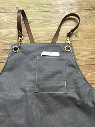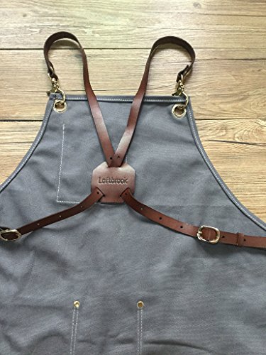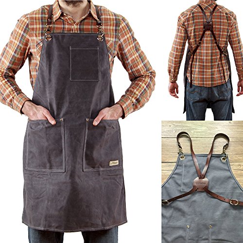 - CLASS UP YOUR BASEMENT: Why compromise your style with a boring, characterless smock apron? Upgrade your look with this uniquely stylish, XXL, gray shop apron with genuine, vegetable tanned leather straps that will make you look like a pro.