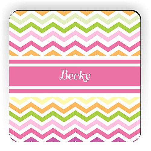 Rikki Knight "Becky" Pink Chevron Name Design Square Fridge Magnet