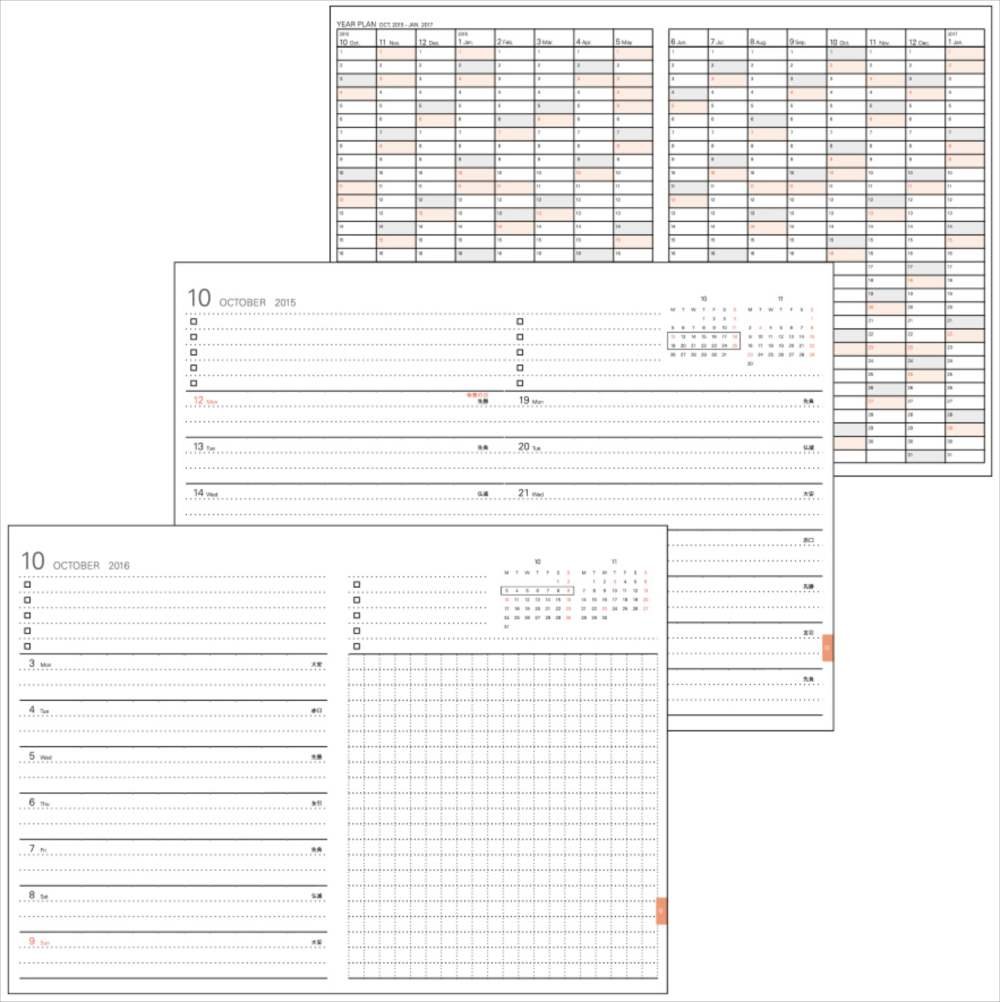 · January to December 2016: Left type weekly / one week spread