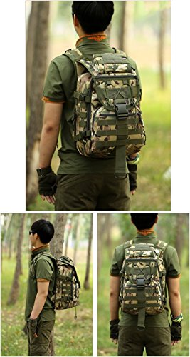Studio : My case diy store Publisher : My case diy store Product Description Structure 1.Exterior: Three zipped front pockets,Card Buckle Closure Package Cover,Cover with Two zipped pockets 2.Interior: Four open pockets,One Magic pocket 3.Outer Material: High Strength Abrasion Nylon Inner Material: Waterproof Silky Cotton 4.Back: Thicken Breathablec Sponge 5.Hardware: Metal Lengthen the Rope Pull Head 6.Adjustable Long Shoulder Strap: Military Nylon Fabrics Unremovable Shoulder Strap 7.Chest Sliding Control System Measurements 1.Dimensions: 12.2"W x 18.5"H x 9.1"D Front Pockets: 8.3"H x 12.2"W 2.Shoulder Strap Drop: 13.8"-33.1" Shoulder Strap Width: 3" 3.Pocket size: (Zipped front pocket): 13.6"H x 7.8"W 4.Weight: 2.7lb Features 1.Suitable for fitness, outdoor travel,hiking, and other outdoor activities. 2.Chest sliding adjustment system can quickly adjust to their comfortable state,so that more comfortable Backpack. 3.MOLLE external expansion system designed to be used in combination with other equipment,you can load pockets¡e?water bottle bag,accessory kits and other. 4.The bag works well with a variety of different outfits and casual styles. Notes 1.Care: Hand wash with cold water. 2.Tolerance: 0.39"-0.79". 3.Packing List: Tactical bag x 1. 0