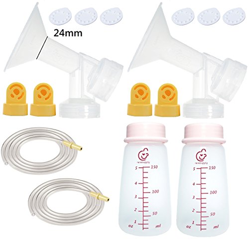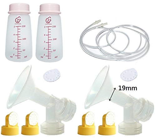 This pump kit enclosed everything you need to get started to pump with Medela Pump In Style Advanced breastpump. It contains 2 5oz/150ml collection bottles, 2 breastshields, 2 Pump In Style tubes, 4 valves and 6 membranes. All parts can be sanitized with boiling water, and are made from BPA free materials. Bottle measurement is printed in color for easy reading. Breastshield is in one-piece (not separable), and is available in 4 sizes: S(21mm), M(24mm), L(27mm), XL(30mm). This pump kit can be used with hand free pumping bras. All parts are compatible with Medela parts. You can use Nenesupply parts and Medela parts interchangeably. Packed in retail box, sealed by manufacturer for protection and hygiene. Comply with with FDA regulation 21 CFR 177.1520, 21 CFR 177.2600 and EU Commission Regulation (EU) No 10/2011 for plastic materials that intended to come into contact with food.Feature