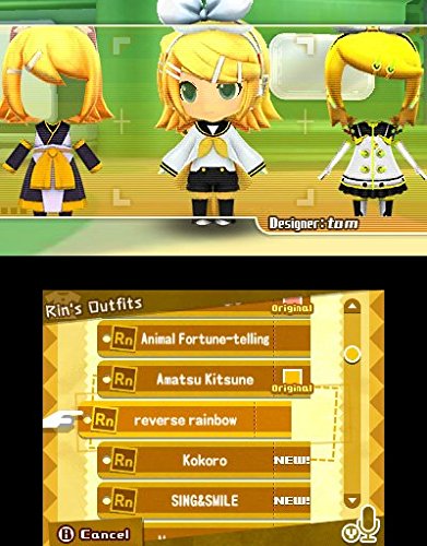 -. Feature : Whether you're a rhythm game novice or veteran, Hatsune Miku: Project Mirai DX has you covered. In the Rhythm Game, you can choose between "Tap Mode" or "Button Mode", each featuring multiple levels of difficulty and a wealth of customization options. / Hatsune Miku: Project Mirai DX takes the Miku experience to the next level with new creative modes. Watch videos and add your own commentary in Mirai Theatre, create a unique dance routine in the Dance Studio, or compose your own unique song phrases. / Miku has shared her world with you, now it's your turn. Use the 3DS camera and 38 unique AR cards to bring Miku into you world in stunning 3D. / Choose your favorite character and start building your own unique friendship. You can decorate their room, dress them in different costumes, give them thoughtful gifts, or perhaps take them on a vacation.