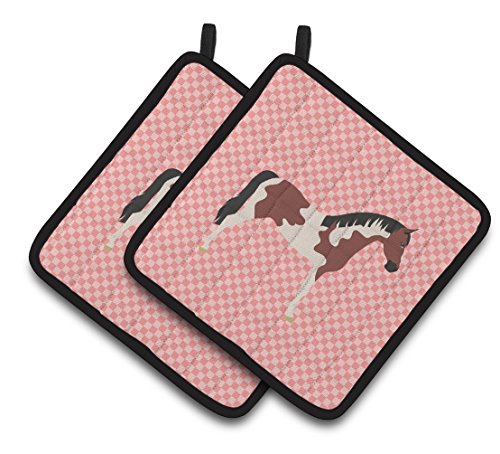 Caroline's Treasures BB7907PTHD Pinto Horse Pink Check Decorated Pot Holder, 7.5" x 7.5", Multicolor