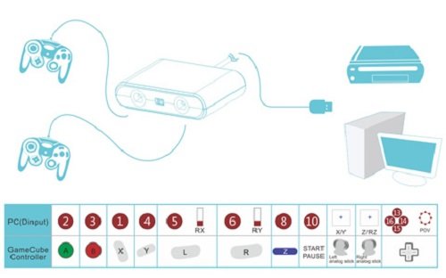 GameCube Controller Adapter for Wii U and PC USB Two ports
