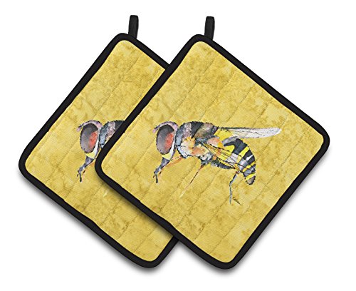 Caroline's Treasures Bee On Yellow Pair of Pot Holders 8851PTHD, 7.5HX7.5W, Multicolor